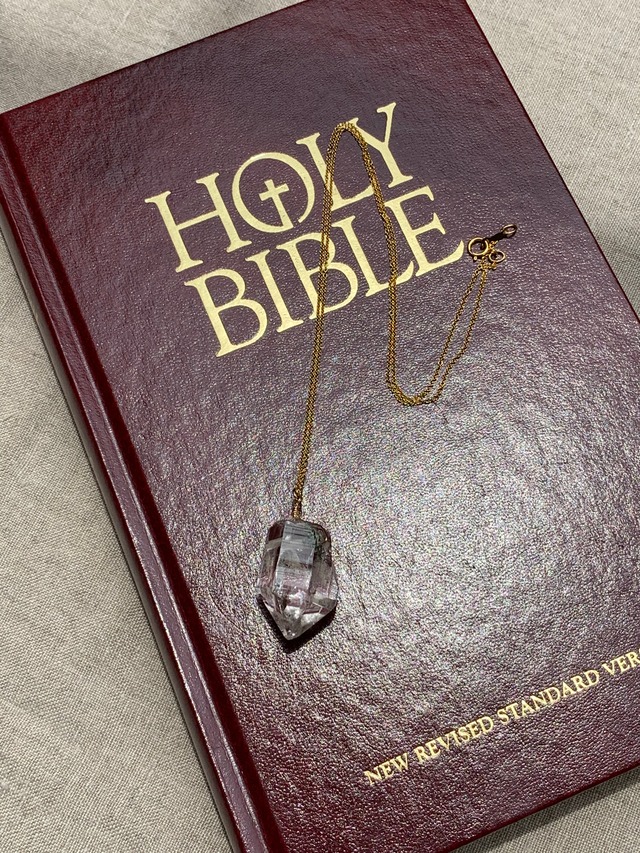 お好みの長さにお着け頂けるようになっています。先には、水晶をつけました。