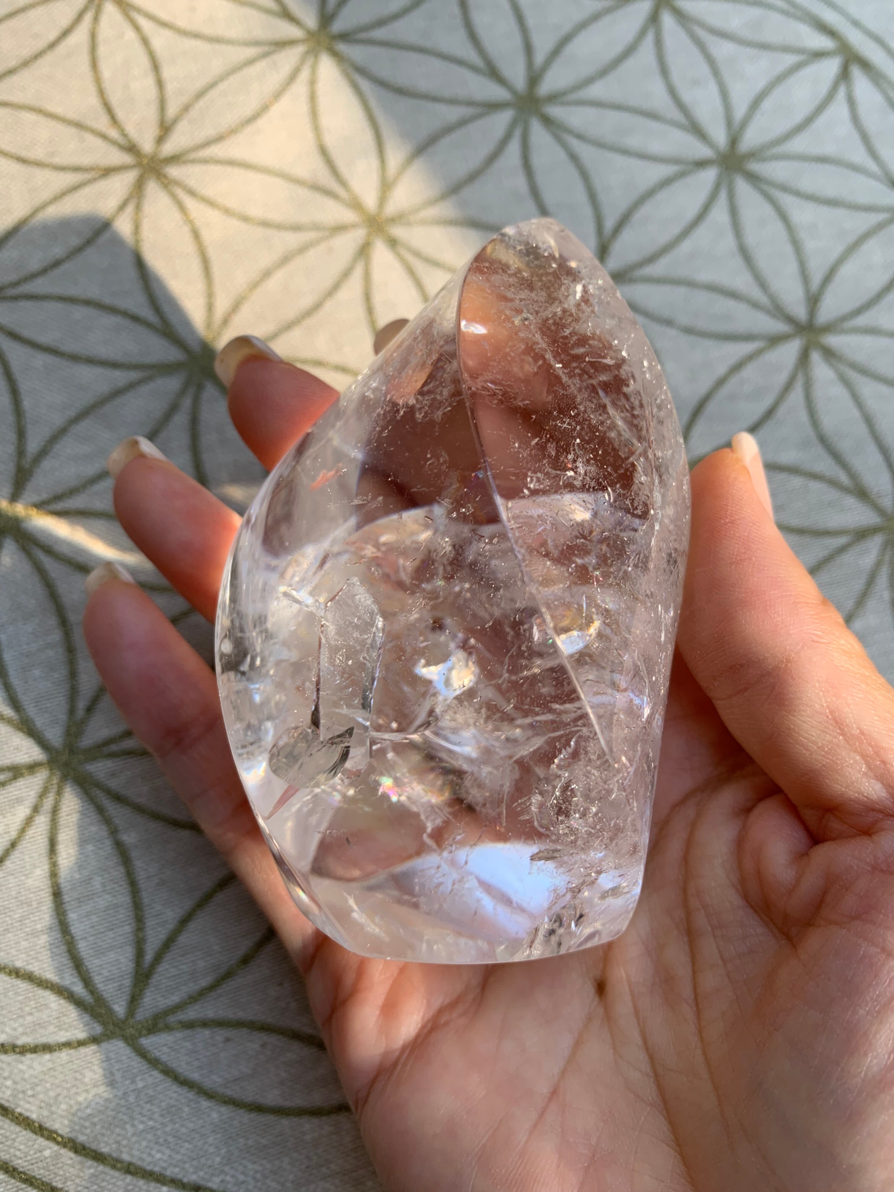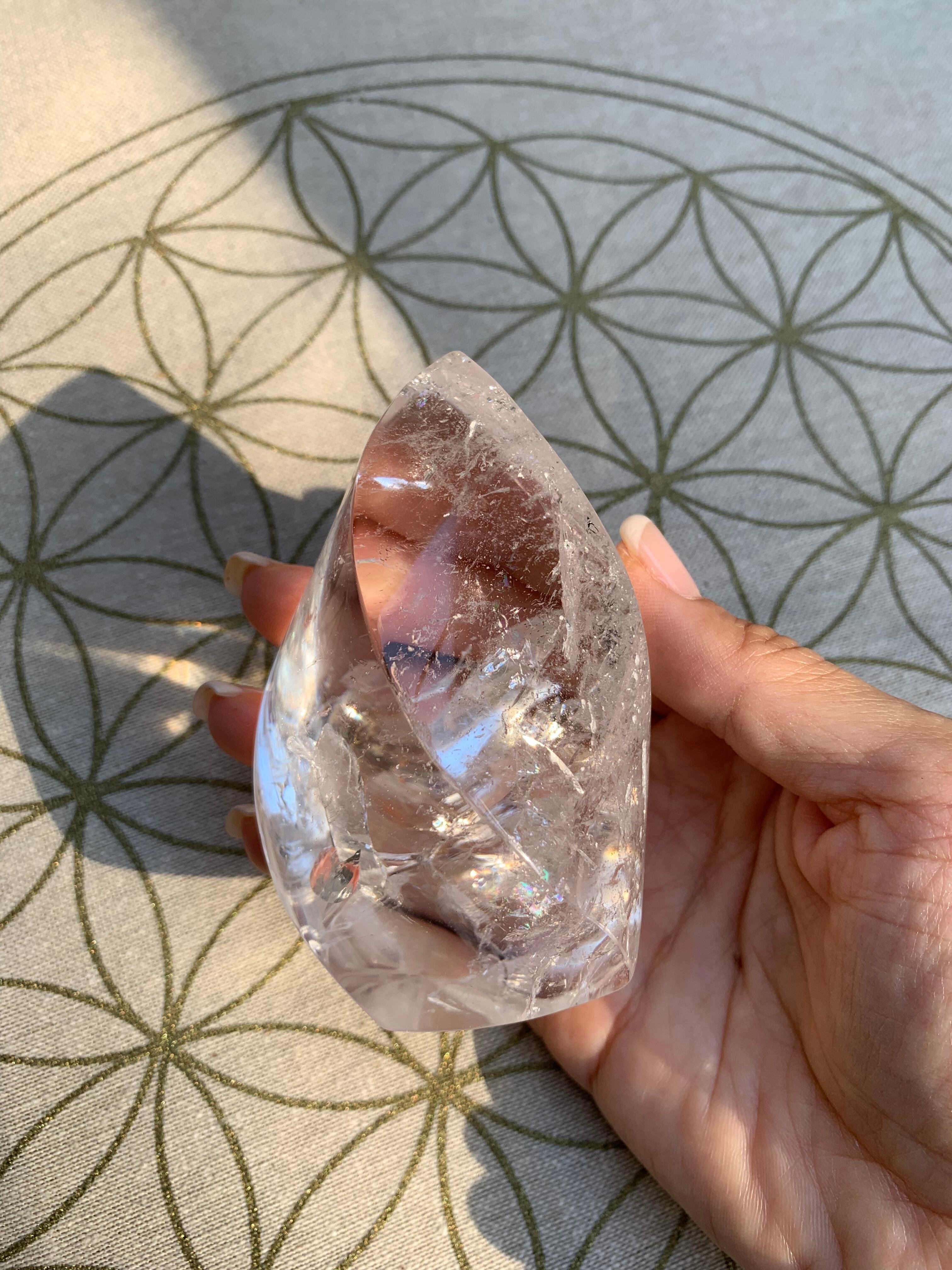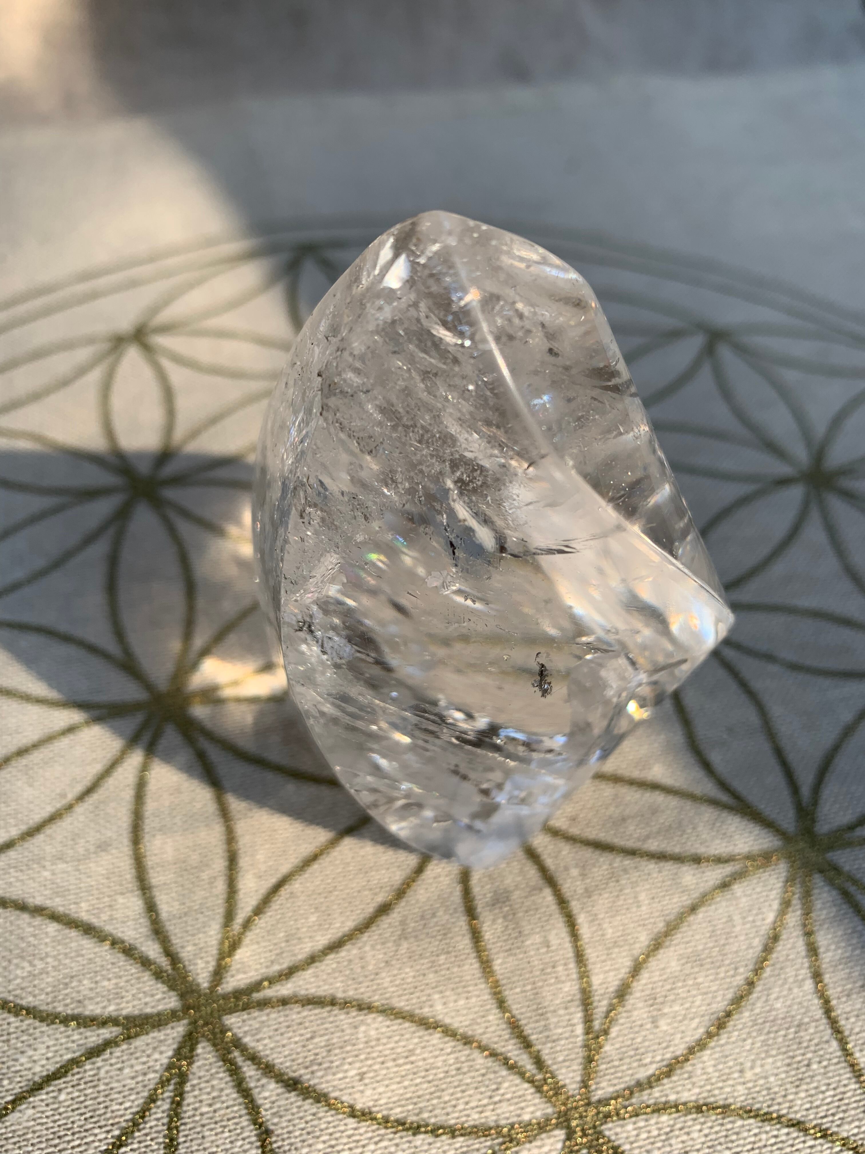 負晶クリスタルとは、水晶の中に綺麗なポイントの結晶が存在するものを言います。更にこのポイントは、ダブルターミネーテッドの珍しい形が結晶として入っています。負晶入り水晶は、神秘的な力を持つと言われていて、回転する宇宙とも言われる様です。