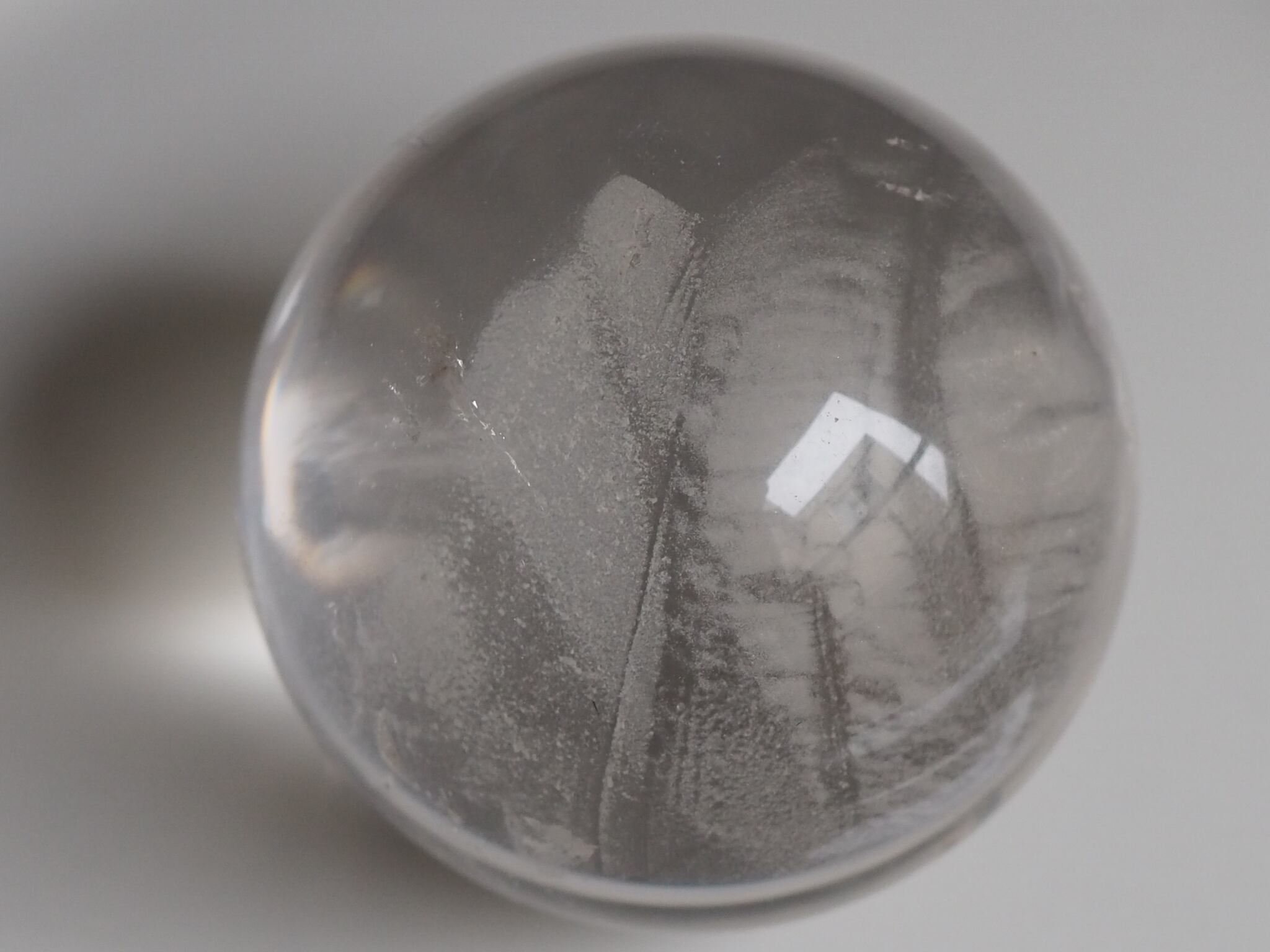 クリアクォーツのスフィアの中にヘマタイトがちょこっと入った可愛らしいスフィア。