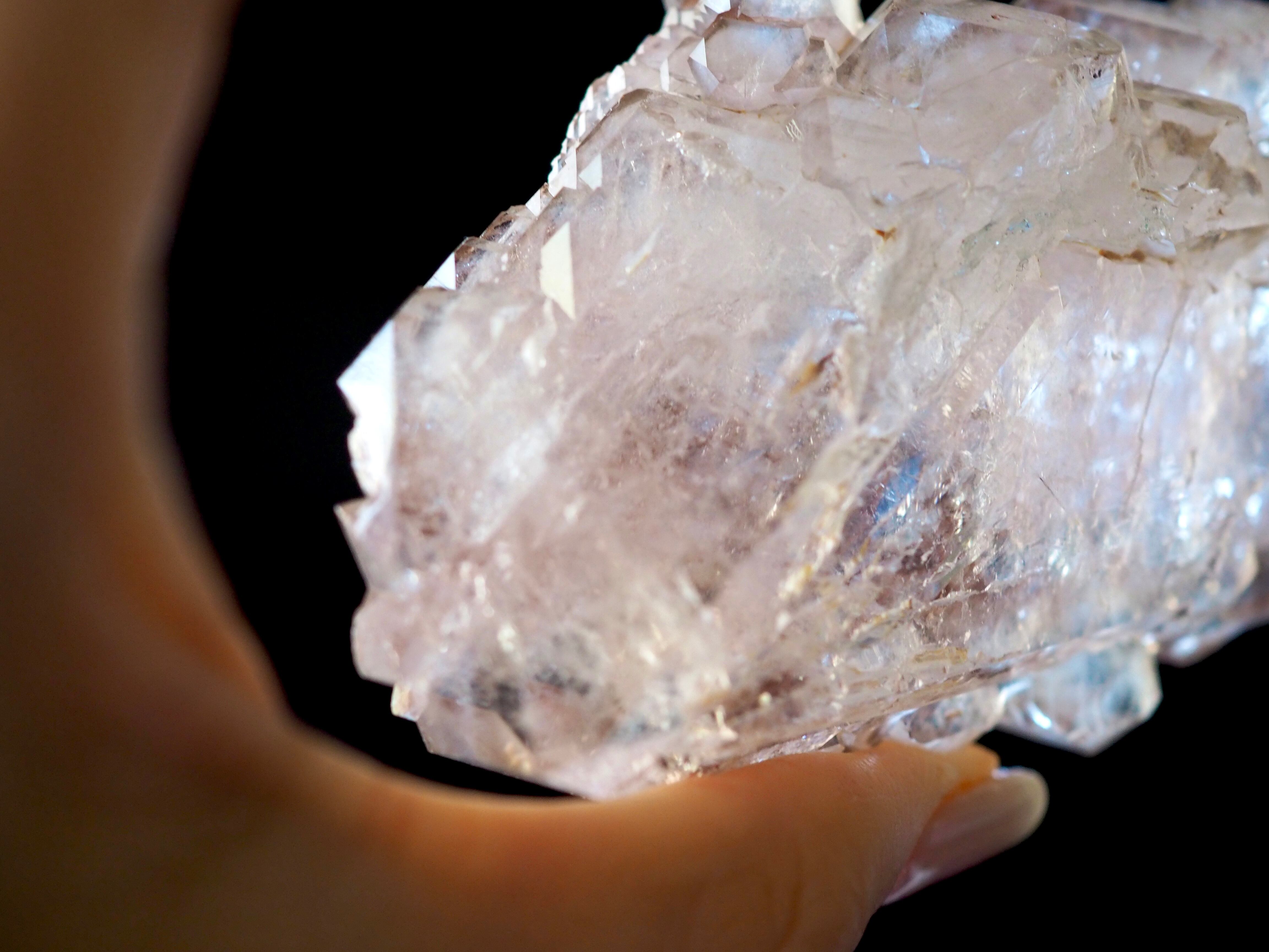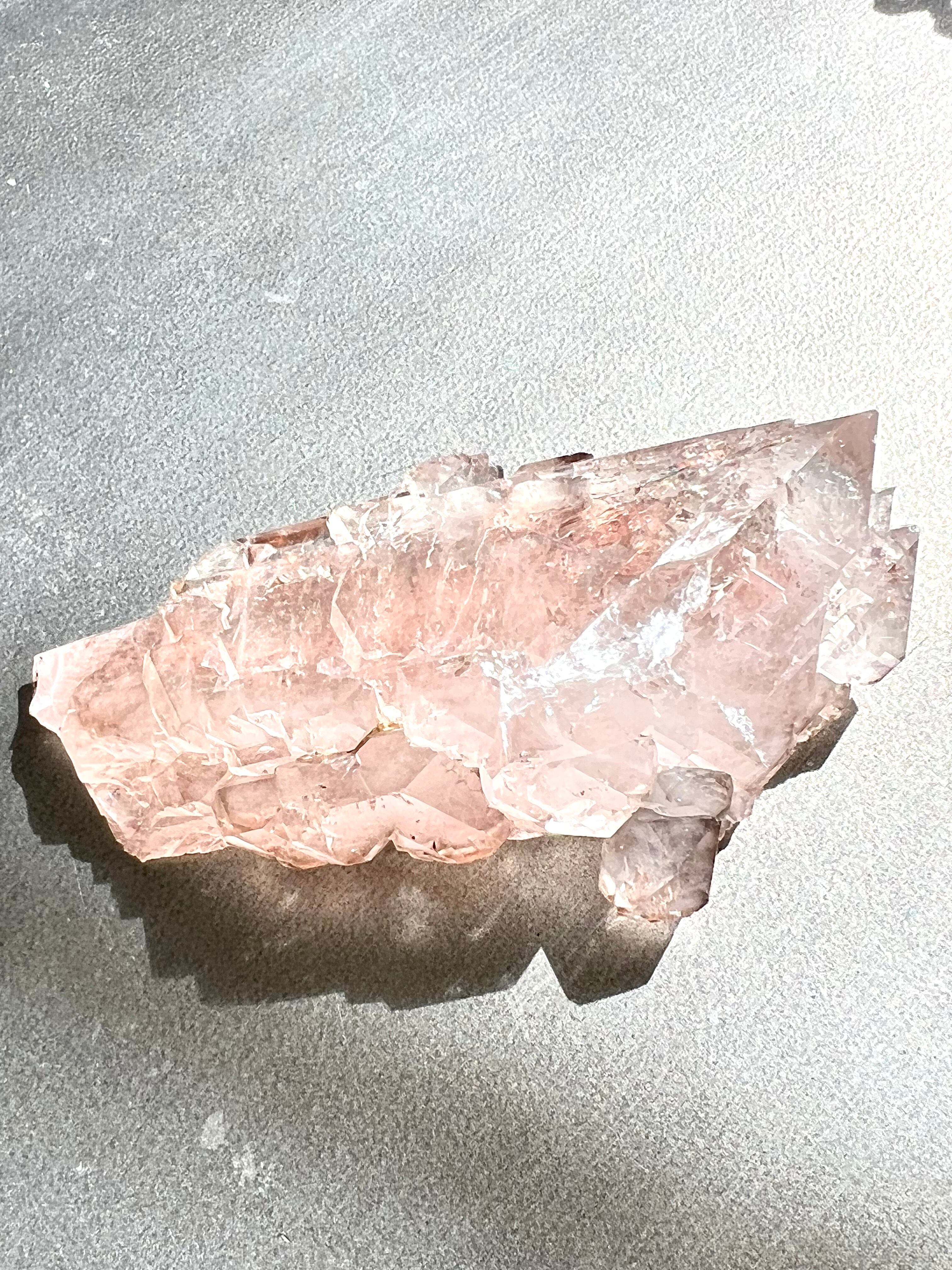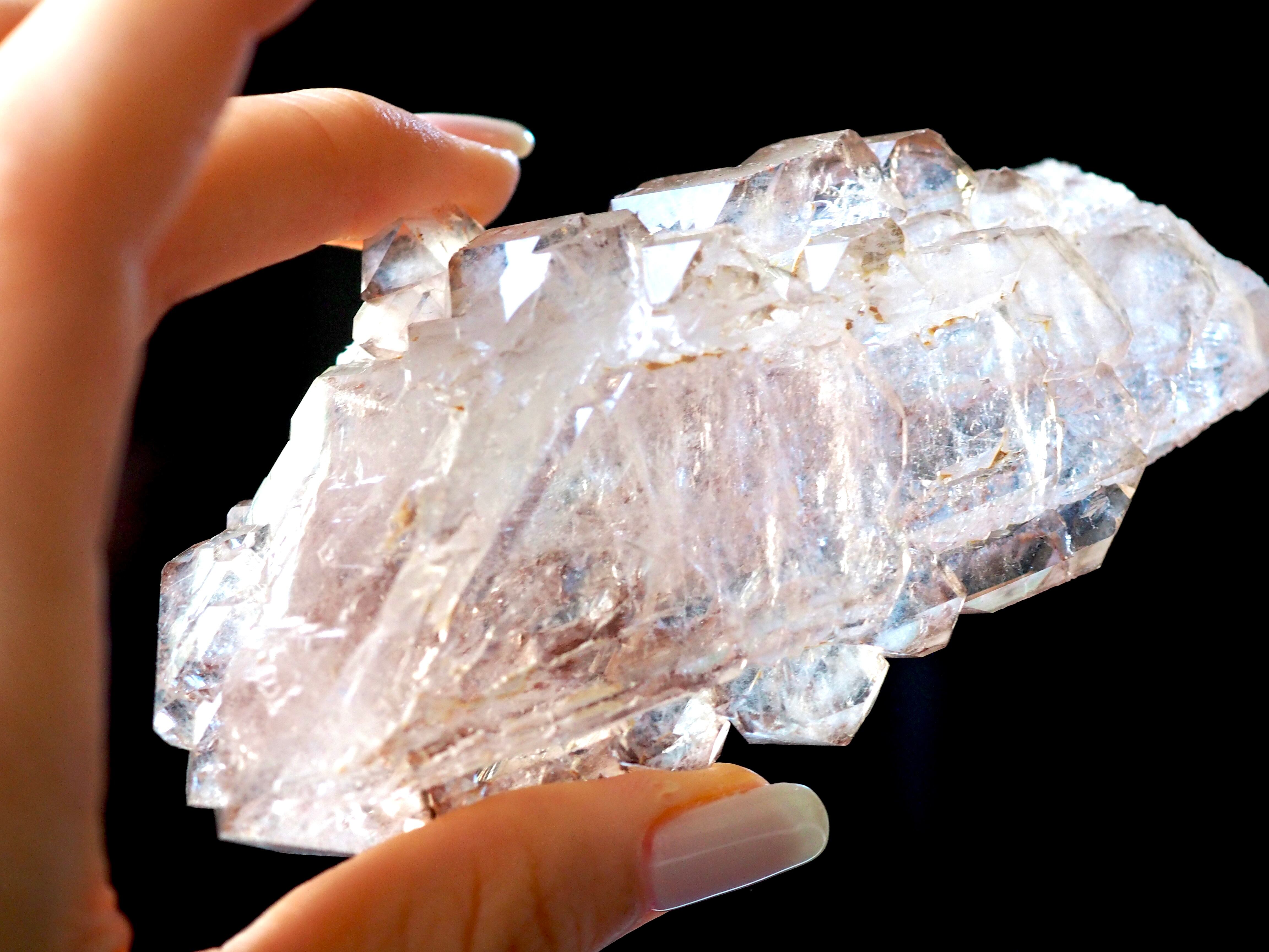スモーキーエレスチャルの中でも全体的にピンク色をしたスモーキークォーツです。長老感の中に愛らしさがある子です。天使の羽を連想してしまう形です。